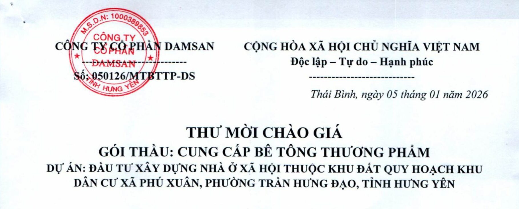 THƯ MỜI CHÀO GIÁ – DỰ ÁN NHÀ Ở XÃ HỘI PHÚ XUÂN (HƯNG YÊN)