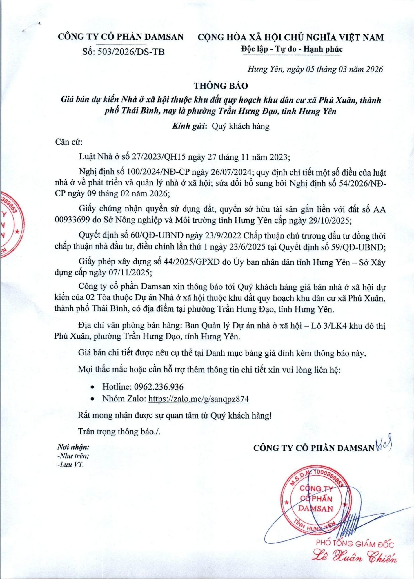 Kính gửi: Quý khách hàng