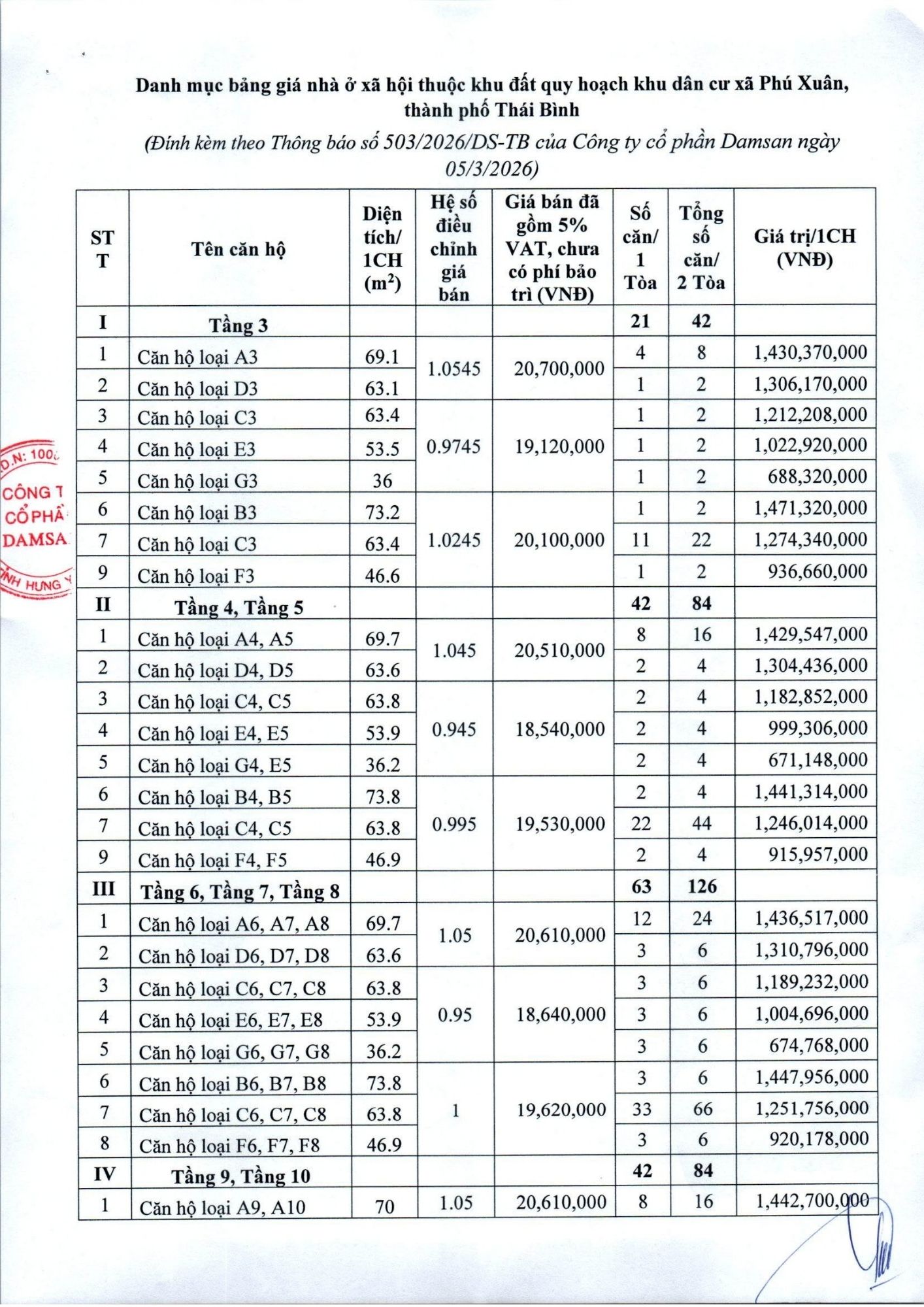 Giá bán dự kiến Nhà ở xã hội thuộc khu đất quy hoạch khu dân cư xã Phú Xuân, thành phố Thái Bình, nay là phường Trần Hưng Đạo, tỉnh Hưng Yên
